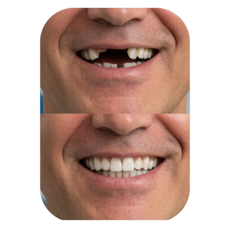 Solução permanente para reposição de dentes perdidos, devolve função e confiança.